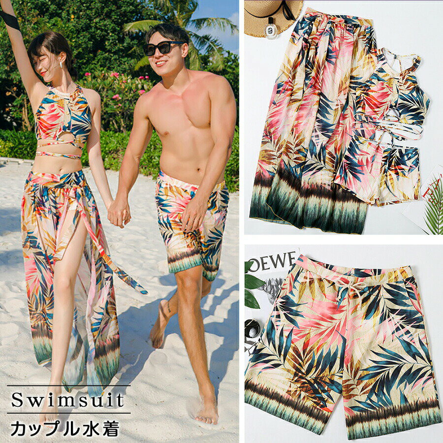 - ペアルック カップル 水着ペア カップル水着 レディース メンズ 2点セット 花柄パ...