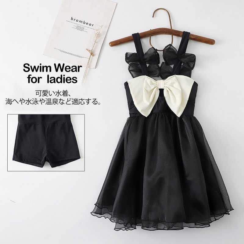 - レディース水着 水着ワンピース 体型カバー水着 可愛いオールインワン 無地 黒 痩...