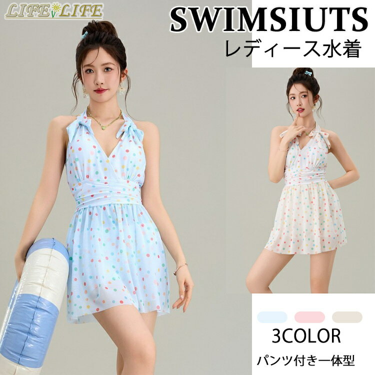 - ワンピース 水着 レディース 水着 水玉柄 オー ルインワン 体型カバー スイムウェ...
