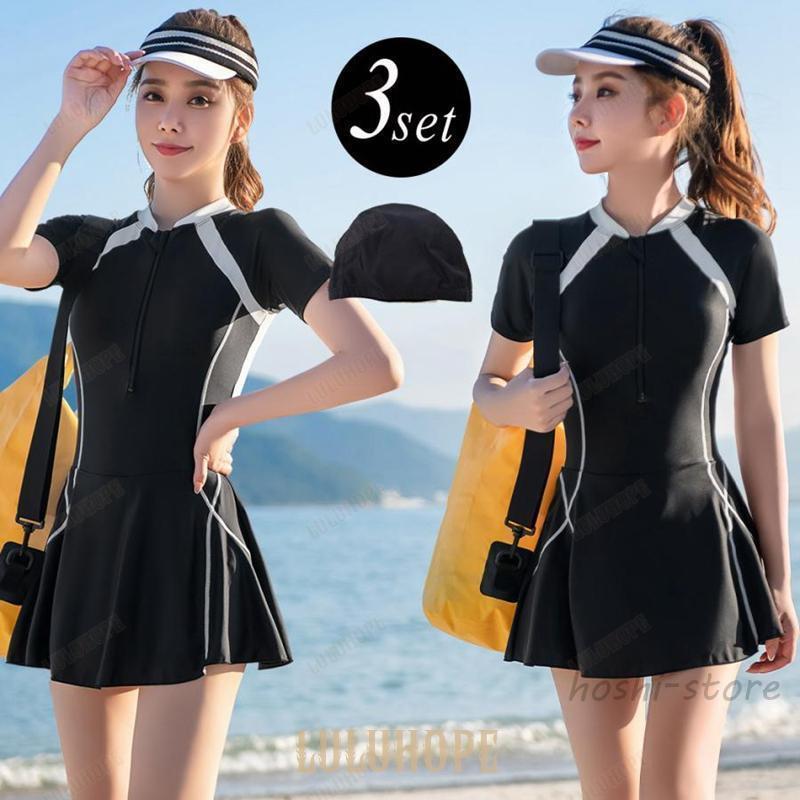 - 水着 レディース 女性用 春夏 ワンピース 半袖 ラッシュガード UVカット 体型カバ...