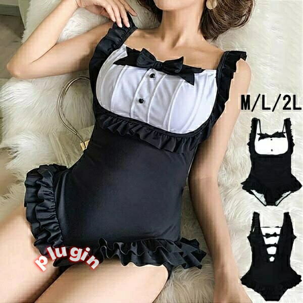 - 送料無料 ワンピース水着 水着 セクシー メイド風 可愛い ラッフル フリル リボン ...