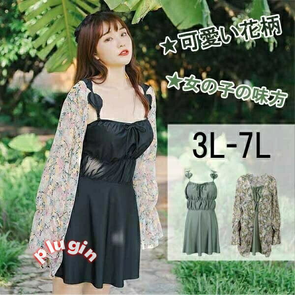 - 送料無料 ワンピース水着 服みたいな オールインワン ぽっちゃり 韓国風 レディー...